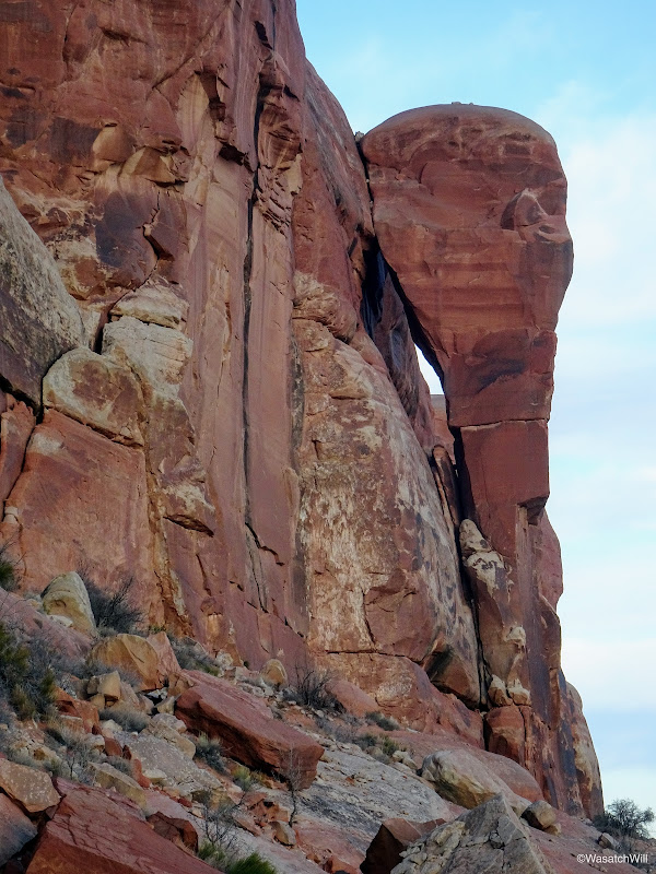 We awoke at sunrise and rather than going straight into breakfast, we chose to get our blood going by wandering around our camp a bit to do some exploring. There was supposed to be an arch nearby according to the map, that I think we found, but it wasn't anything dramatic and impressive when compared to so many other more well-known arches through out the Moab area.